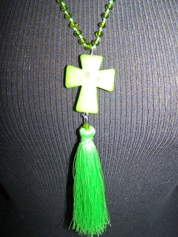 21" Beaded Necklace (Cross) with Tassel