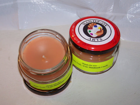Handmade recycled glass jar candle. Burn on heat-resistant surface. Never leave burning candle unattended. Keep out of reach of children, pets, and flammable materials. Trim wick to 1/4" prior to lighting. Burn no longer than 4 hours at a time. Container will be hot when candle is lit. Allow to cool before re-lighting.